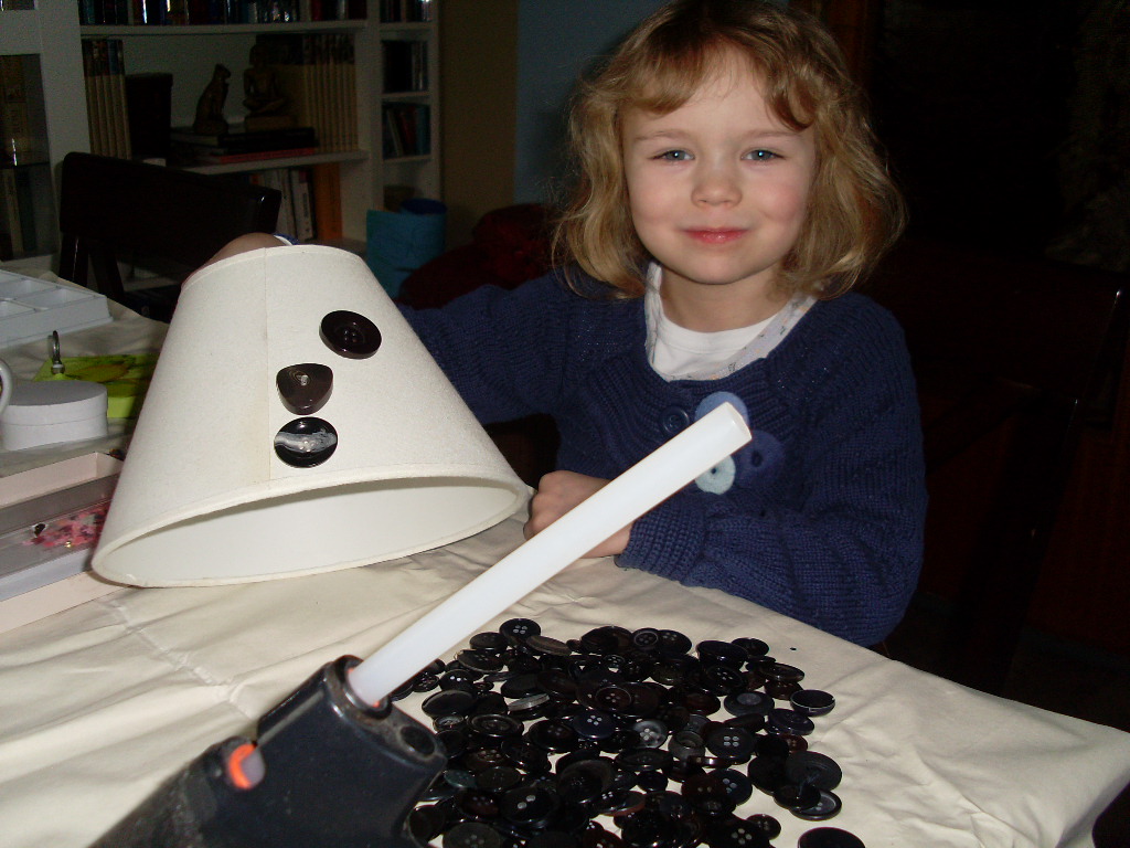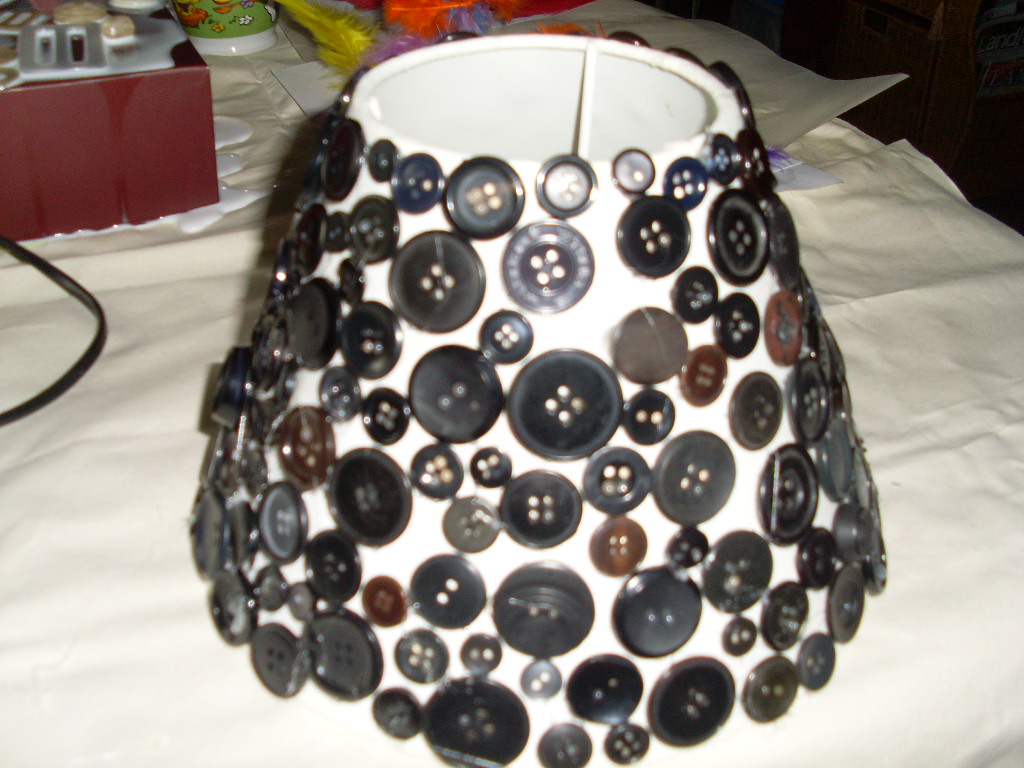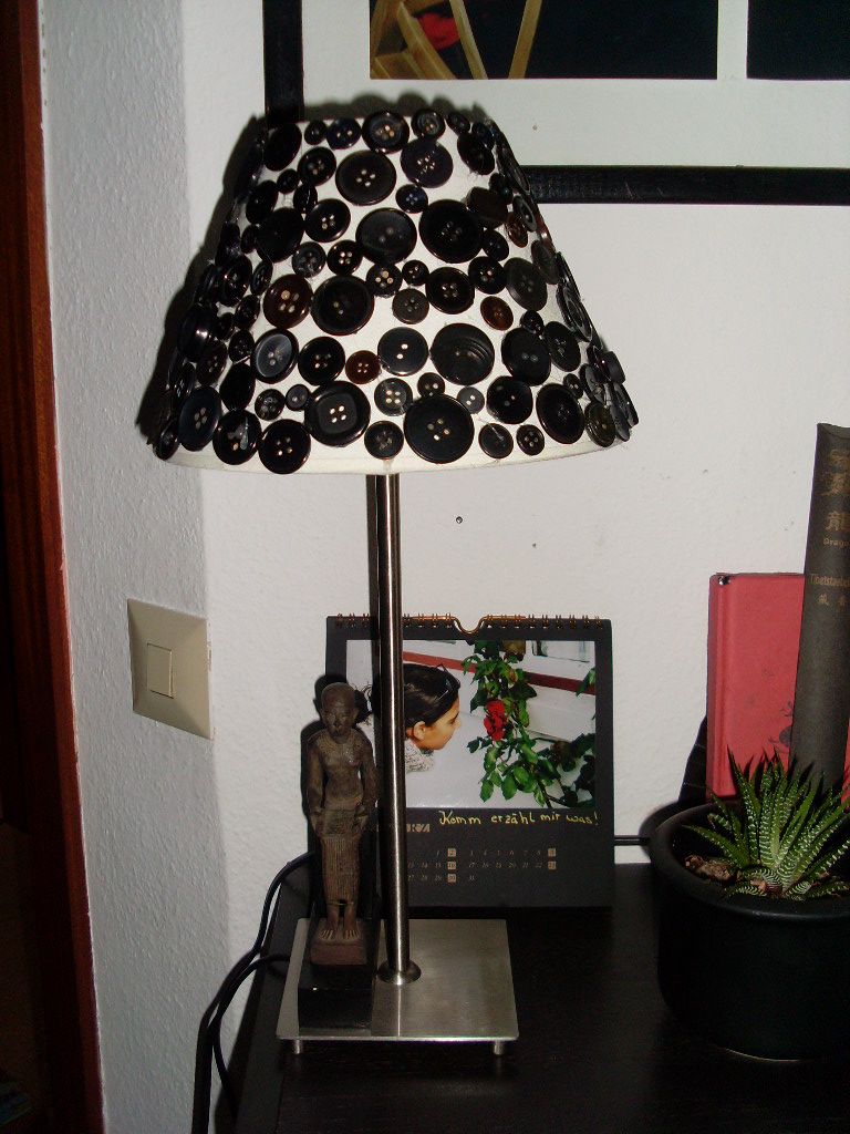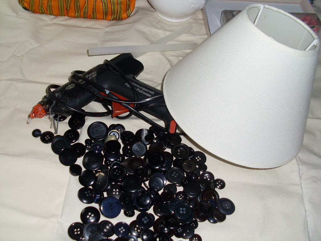 Du benötigst nur ein paar alte Knöpfe, Heißkleber und einen Lampenschirm. Alle Knöpfe nach und nach aufkleben und fertig ist das Kunstobjekt!