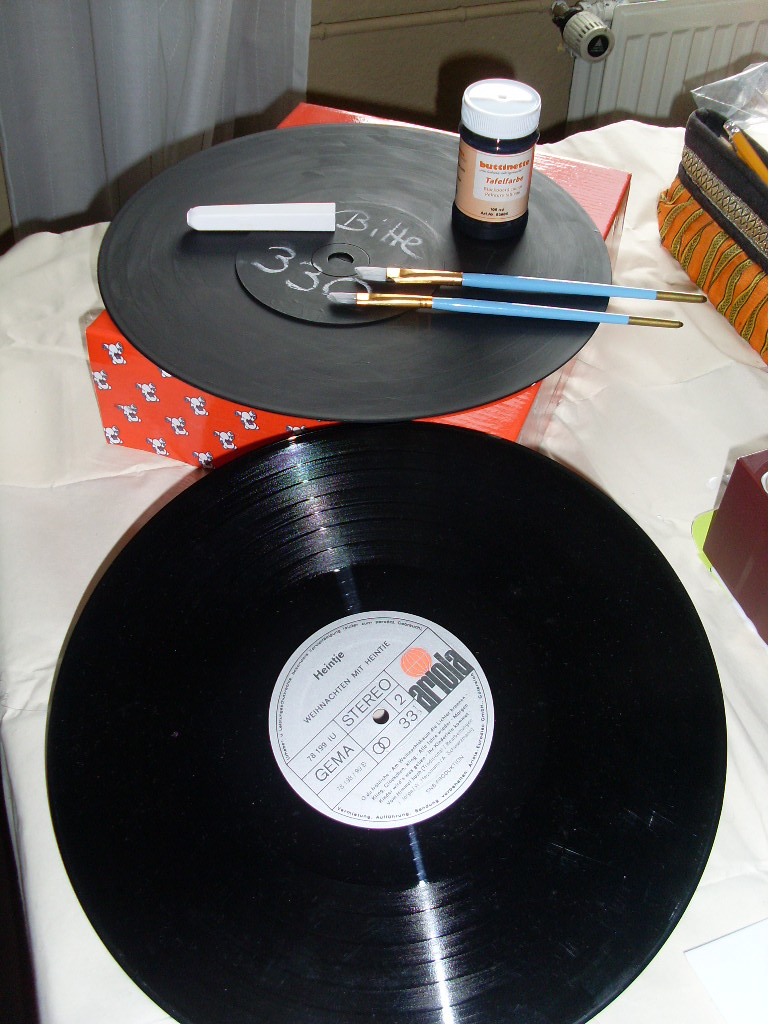 Alte Schallplatten und Tafelkreide für neue Notizen!